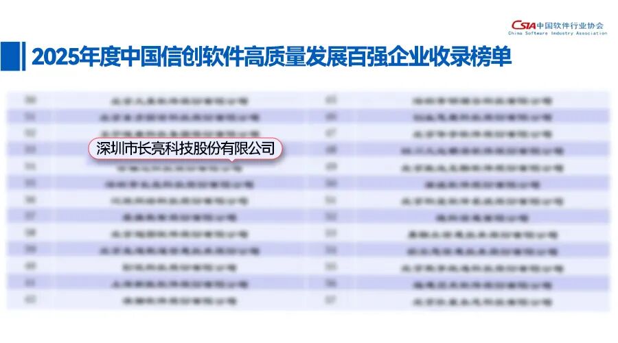 近日,在中国软件行业协会、华东师范大学联合主办的2025中国软件高质量发展大会上,长亮科技凭借突出的技术创新与行业贡献,一举斩获“中国软件诚信示范单位(2025-2028年)”、“2025年度中国软件高质量发展前百家企业”两项重磅荣誉。此外,公司亦入选中国软件行业协会发布的“2025年度中国信创软件高质量发展百强企业收录榜单”,充分彰显了其在金融科技领域的强大实力与标杆姿态。